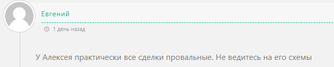 Также есть заявления от подписчиков, что трейдер рекламирует сомнительные организации, в которых люди имеют огромные риски потерять свои деньги. Многие отмечают, что сам Алексей никак не реагирует на эти жалобы.