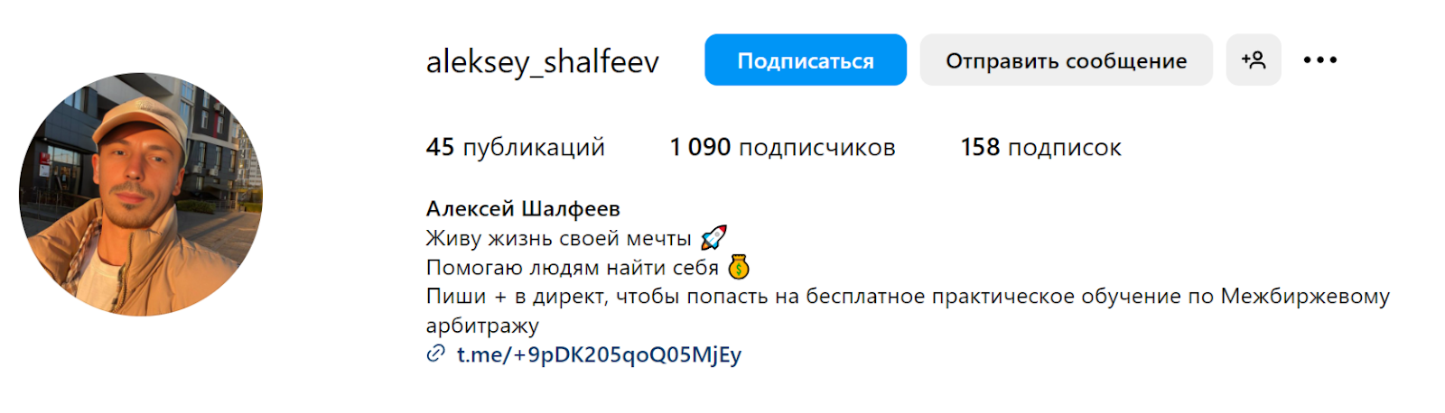 Помимо Telegram-канала “P2P Клуб Алексея Шалфеева” у трейдера есть свой Instagram, где на него подписаны около 1000 человек. Здесь он уже более подробно рассказывает о своей жизни, и, как можем увидеть, инвестор делится своим успехом со всей своей аудиторией. Он выкладывает фотографии со своей девушкой, дает отчётность по посещенным конференциям, а также продолжает мотивировать людей начать зарабатывать деньги через интернет.