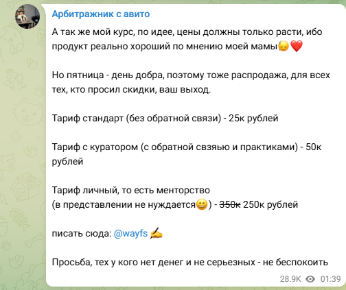 Арбитражник с авито — Телеграмм про заработок на P2P, есть обучение и закрытый клуб, периодически собирают инвестиции на разные стартапы. В открытом доступе полезного контента нет. Минусы: