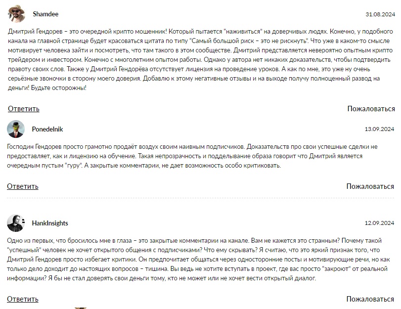 Несмотря на непродолжительное время реальной работы паблика, о нем уже появились отзывы в сети, в них пользователи выявляют недоверие к Дмитрию и его предложениям.
