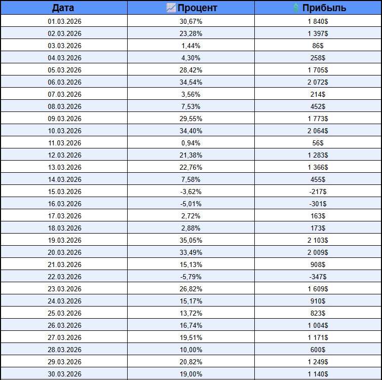 Результаты нас приятно порадовали, доходность превысила 2 300 долларов за 30 дней, но это без вычета комиссии. После того как мы заплатили комиссии, наша чистая прибыль составила около 1700$.