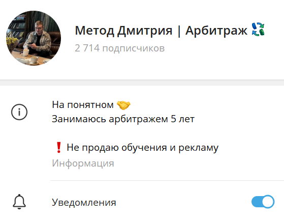 Канал про арбитраж крипты Метод Дмитрия отзывы собирает преимущественно негативные. Автор рассказывает про свои связки и предлагает, на первый взгляд, выгодную схему работы. Разберемся в особенностях сотрудничества и попробуем понять, стоит ли доверять схемам с канала Метод Дмитрия.