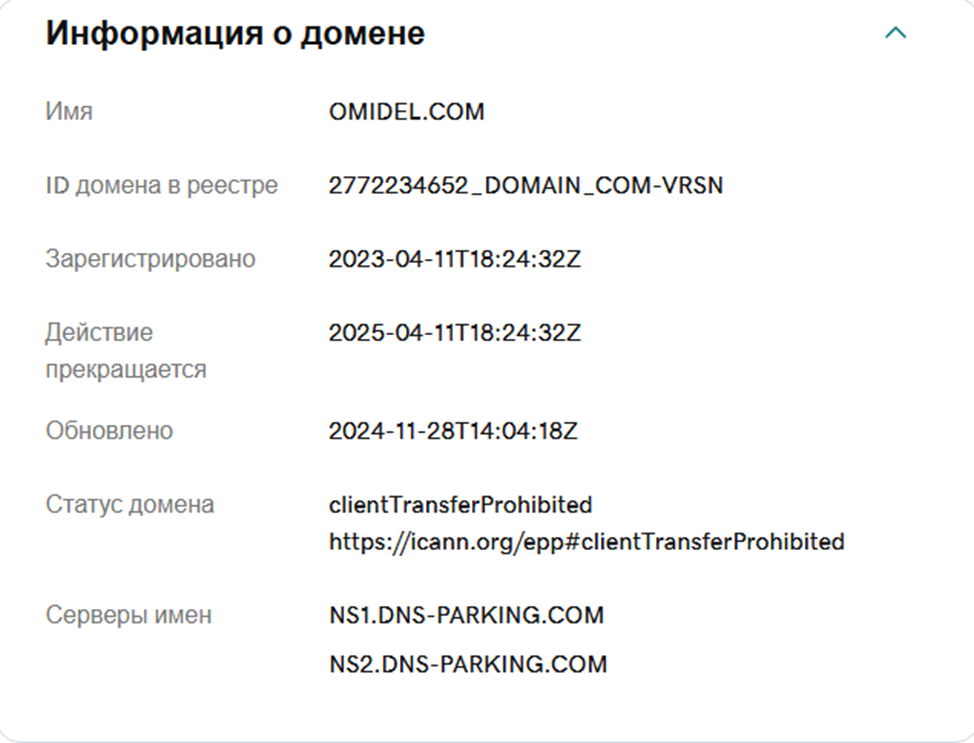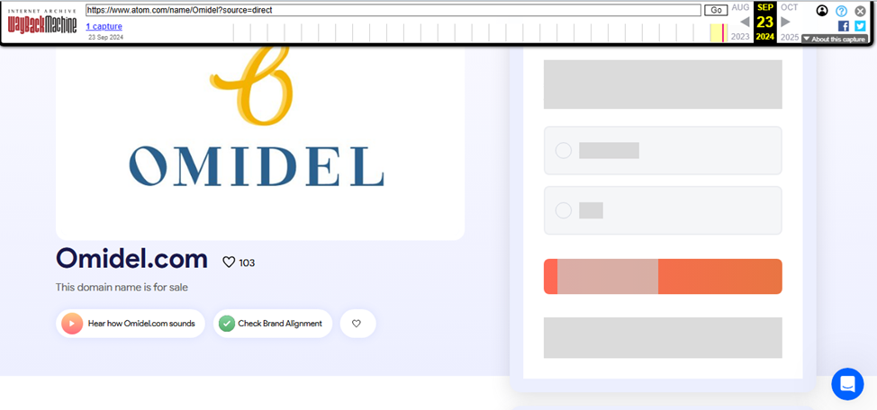 Хотя сайт Omidel Com зарегистрирован 11 апреля 2023 года, интерфейс криптовалютного обменника загружен на сервер только 28 ноября 2024 года. Об этом говорит не только информация регистратора, но и популярный архиватор сайтов. Еще 23 сентября 2024 года адрес активно продавался, стать его владельцем мог любой желающий.