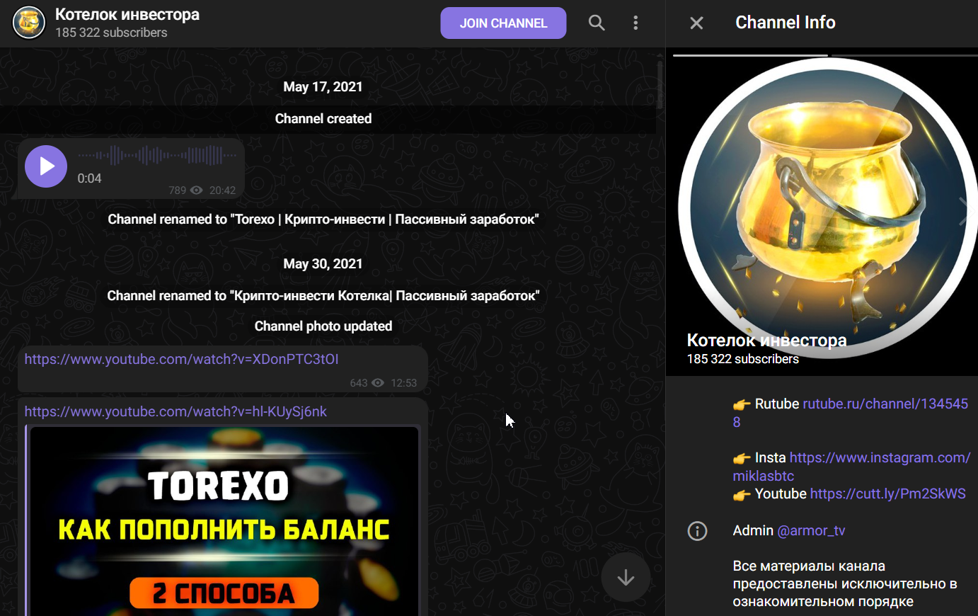 Торговля криптой с Михаилом Котелковым в проекте «Котелок инвестора»: обзор социальных сетей Armor tv, Kriptomoneys, Kotelok investora, Miklasbtc, отзывы о профессиональном и опытном трейдере Mikhail Zorin