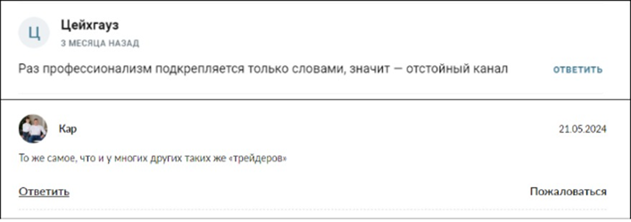 В качестве успешной деятельности представлены скриншоты переписки с благодарными пользователями. Подобные отзывы легко подделать, они не могут быть доказательством высокого уровня доходности. На сторонних ресурсах отзывов немного, большинство из них негативные.