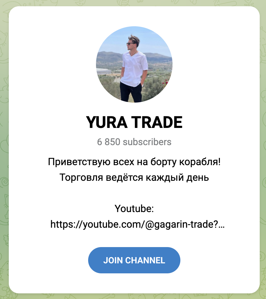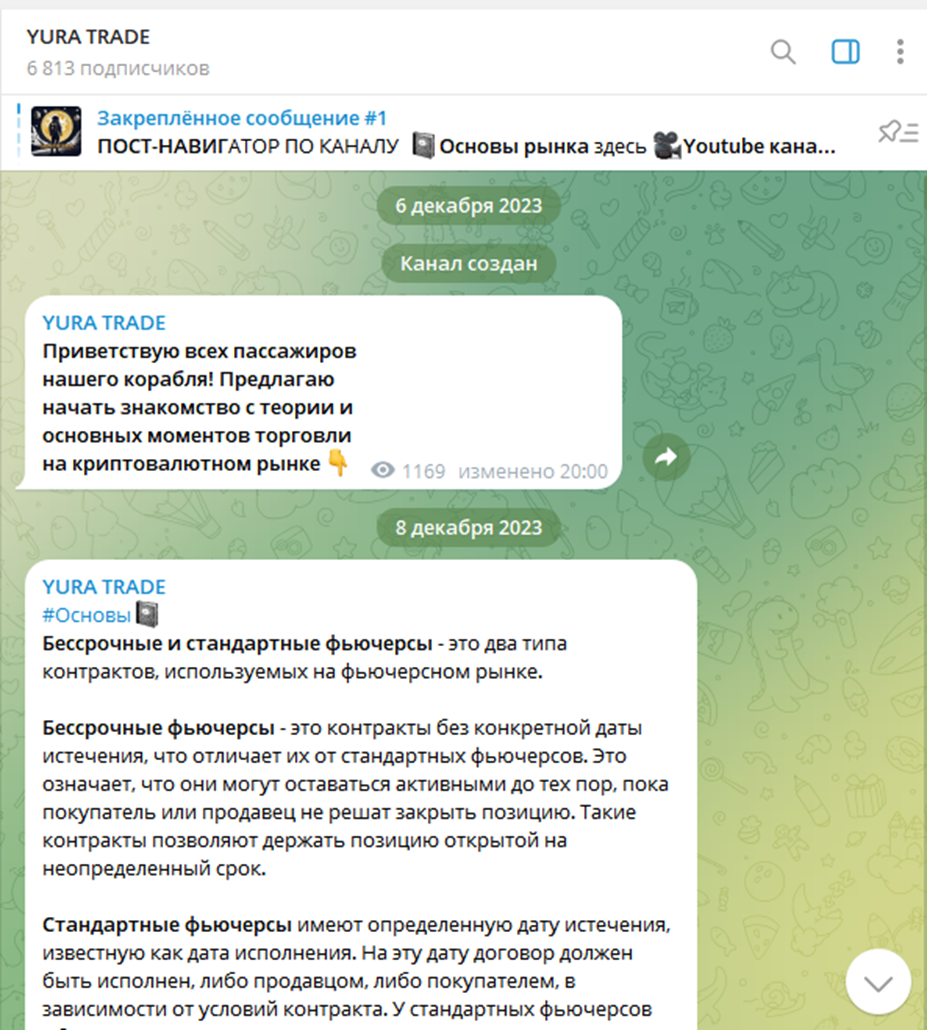 Основная сфера информационной деятельности трейдера Юрия – Telegram. Канал Yura Trade создан 6 декабря 2023 года. Менее чем за год своей деятельности проект привлек более 6800 читателей. При этом в среднем посты набирают чуть больше 1000 просмотров.