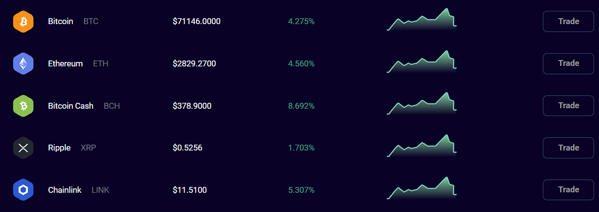 - Возможности — торговля и обмен криптовалют, P2P-маркет, криптокошелек, инвест-предложения.