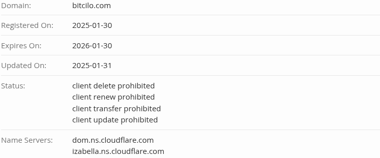 Проверка домена Bitcilo com показала, что сайт работал крайне непродолжительное время. Он был запущен 30 января 2025-го. Менее чем через два месяца он полностью пропал из глобальной сети.