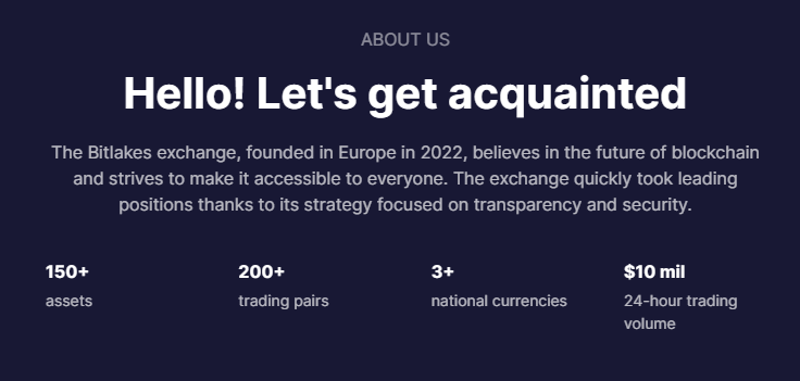На сайте размещена информация о достижения платформы. Якобы, Битлэйкс — это лидирующая биржа с ежедневным оборотом в $10 млн. Проверить эту информацию невозможно.