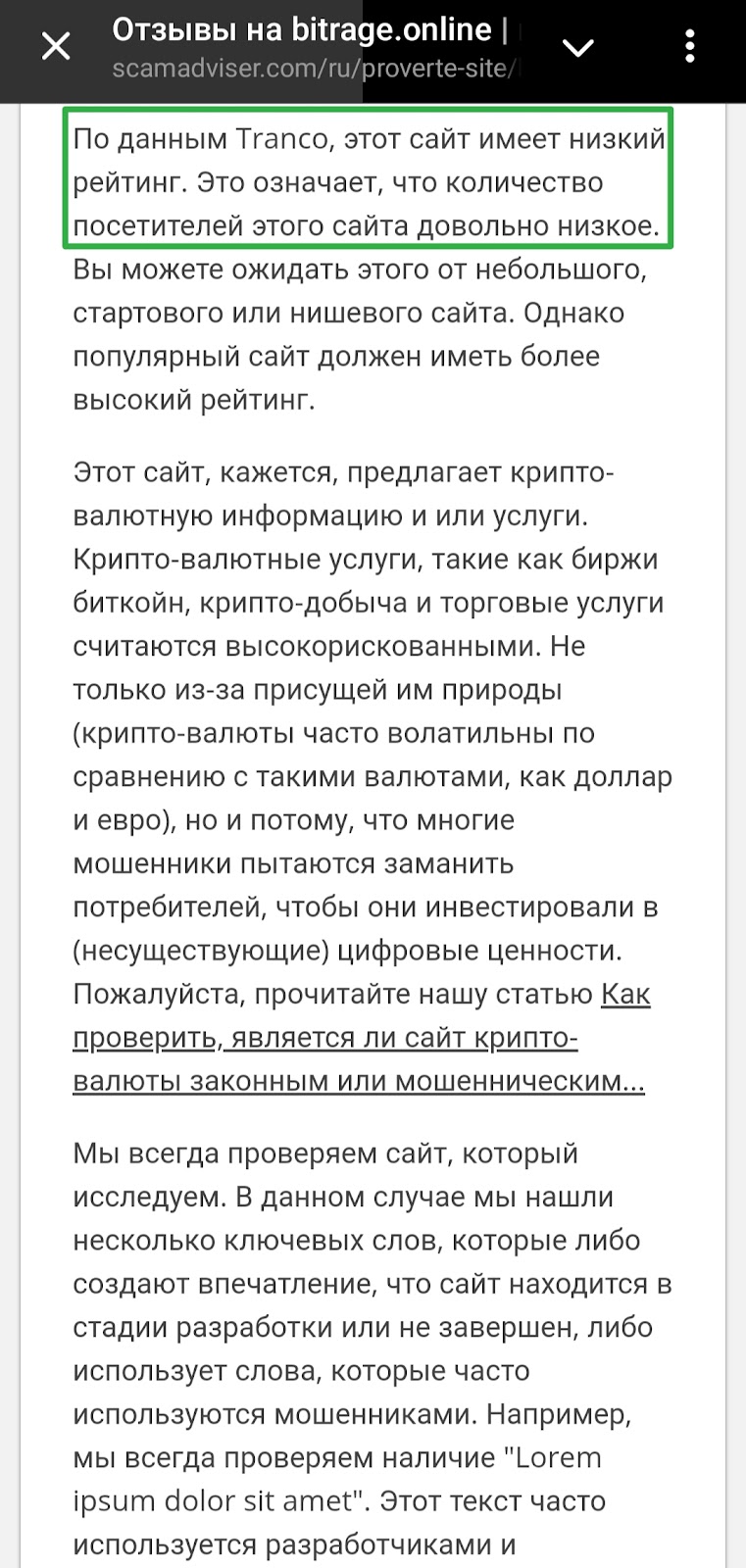 Правда независимые сервисы вроде ScamAdviser пишут обратное — трафик у сайта довольно низкий.