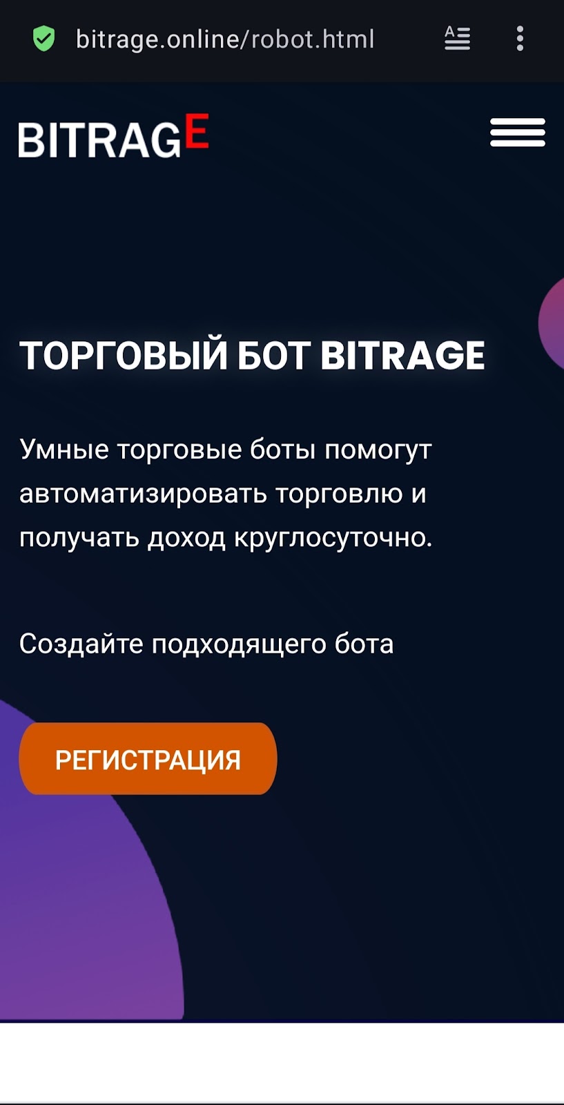 Отдельно рекламируют торгового робота — якобы умный алгоритм для заработка. Здесь тоже есть подвох: в самом низу сайта написан «Отказ от ответственности», в котором указывается, что сервис не отвечает за работу роботов и алгоритмов.Получается, если бот потеряет деньги пользователя — претензии предъявлять будет некому.