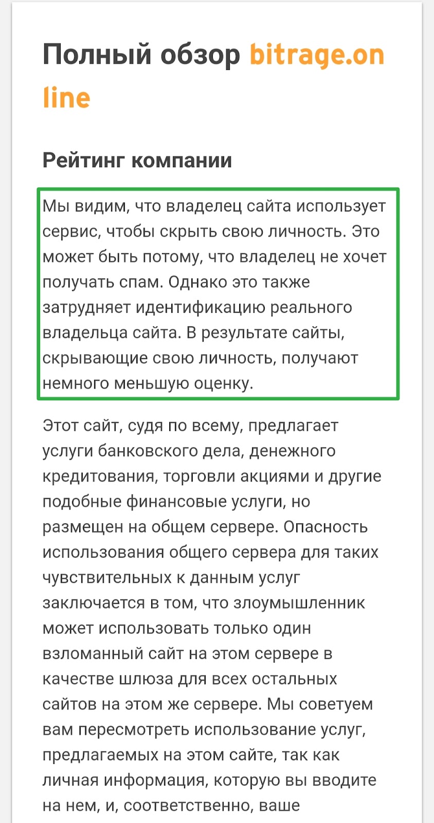 - На специализированных сервисах пишут о подозрениях на обман со стороны Bitrage и о низком показателе доверия, потому что информация на сайте недостоверна. Это значит, что нужно проверять информацию, указанную на бирже, перед использованием.