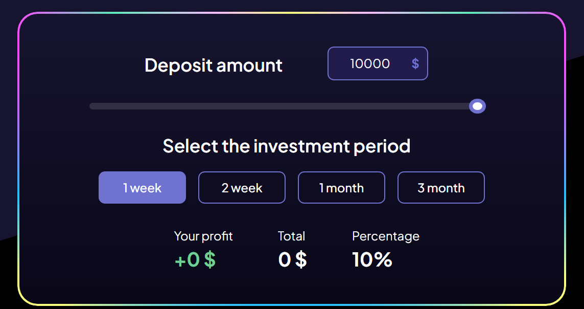 Конкретных тарифов для начала торговли на сайте нет, а также стоит отметить, что проект принимает любые платежные системы и переводы в криптовалюте.