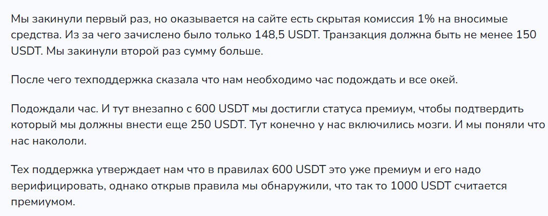 • Проект рассказывает о больших преимуществах и отсутствии рисков, однако по факту не предоставляет ничего из списка услуг, а значит люди могут оказаться на грани обмана и потери средств.