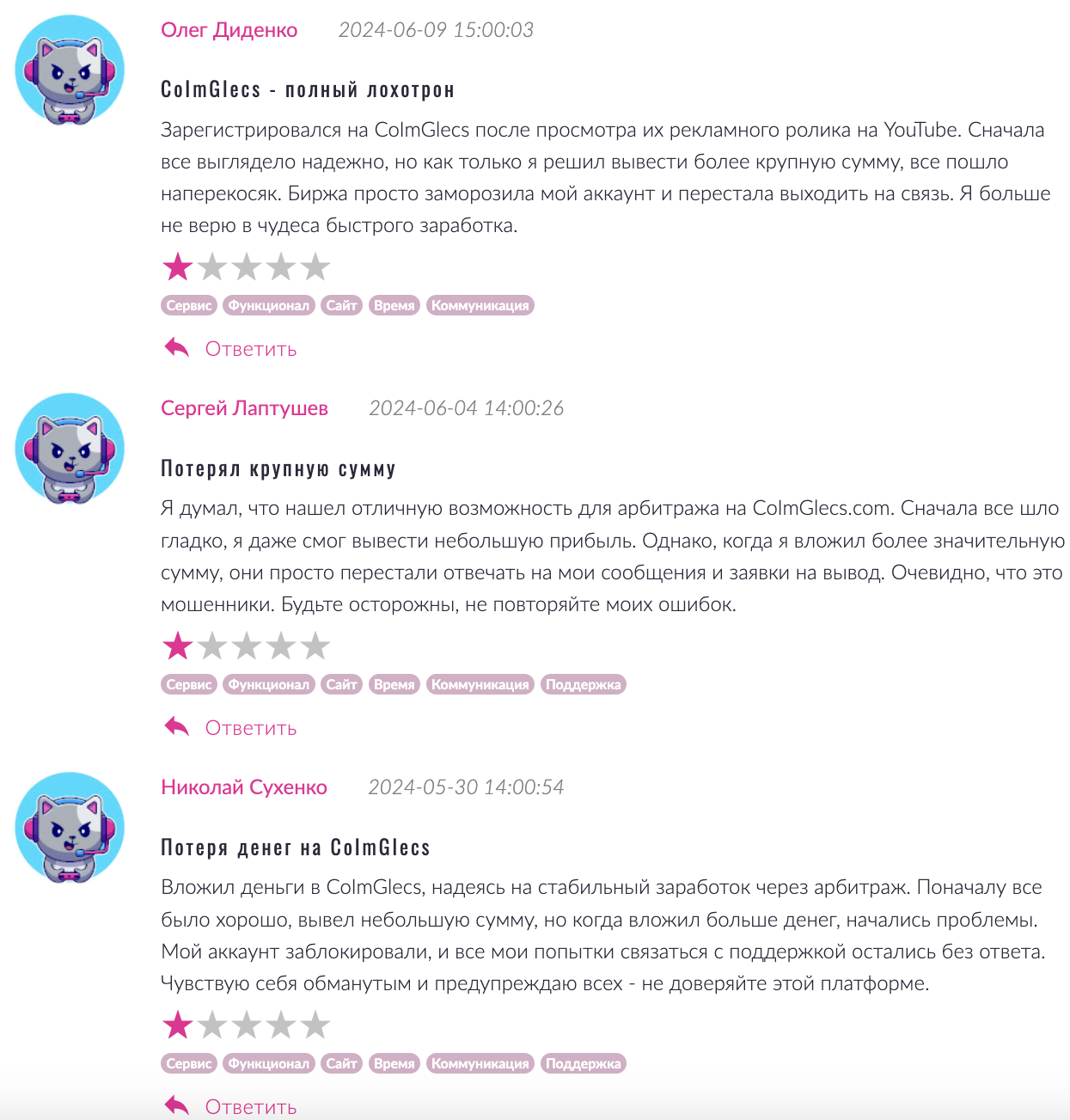 В открытых интернет-источниках нам удалось найти 9 негативных отзывов о работе биржи coimglecs com.
