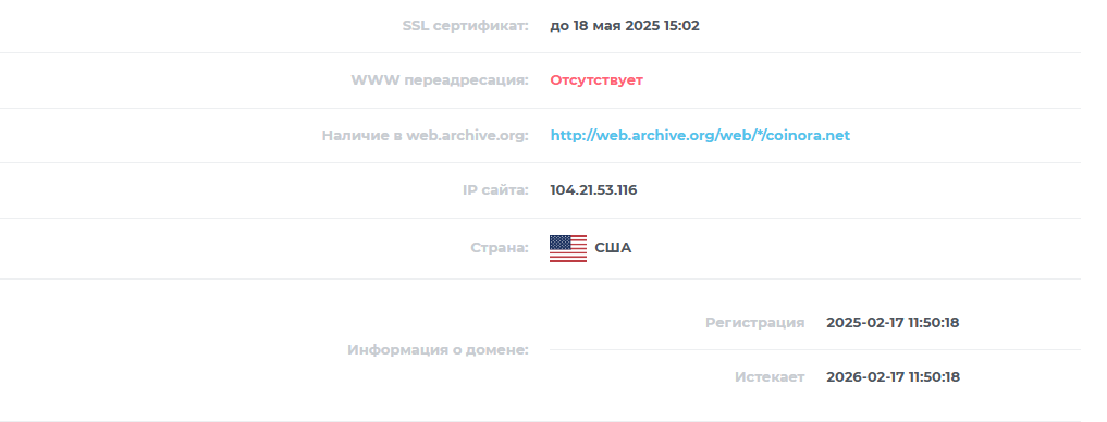 Мы провели оценку производительности сайта Coinora с помощью 2ip и получили следующие результаты: