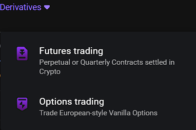 На Cryptouno Me можно торговать фьючерсными контрактами и опционами во вкладке «Деривативы».
