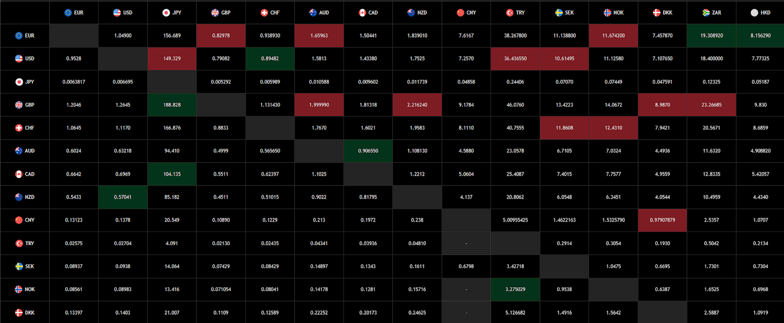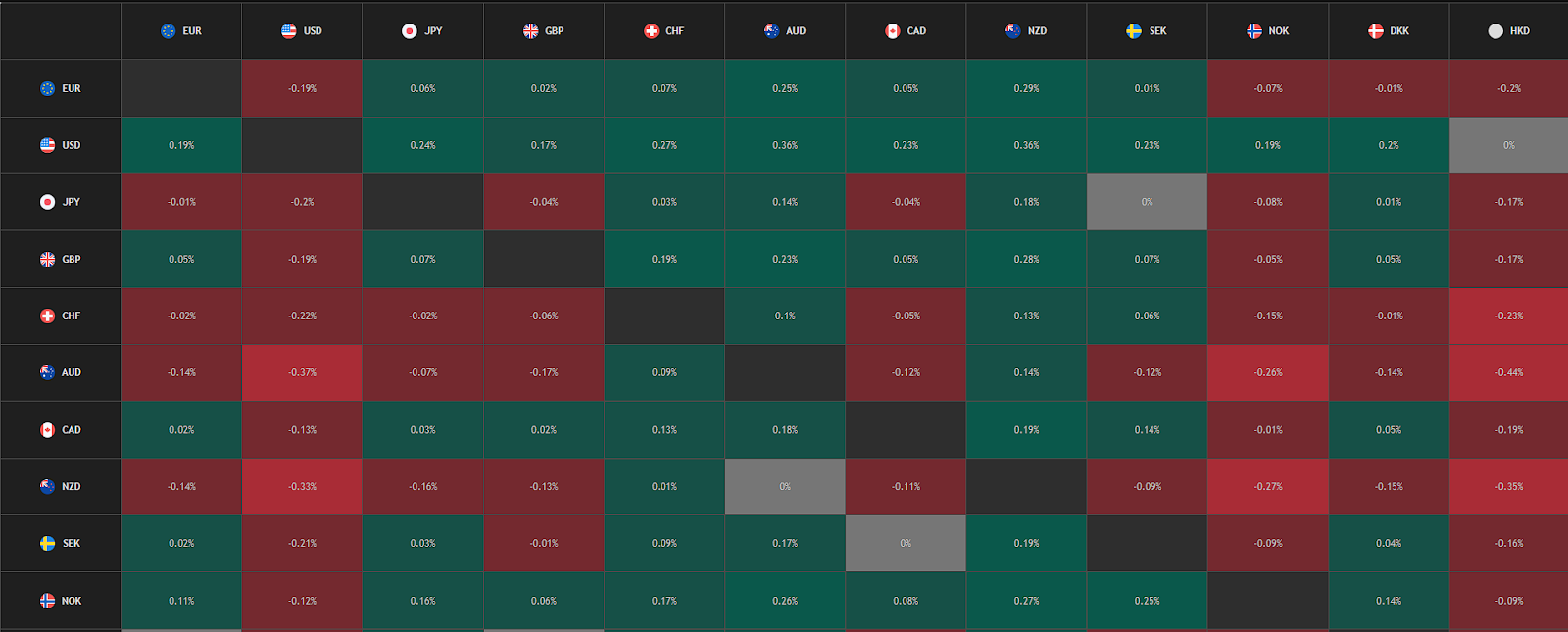 - «Карта валютного тепла»: таблица, в которой отображается изменение цен на фиатные валюту в процентах.