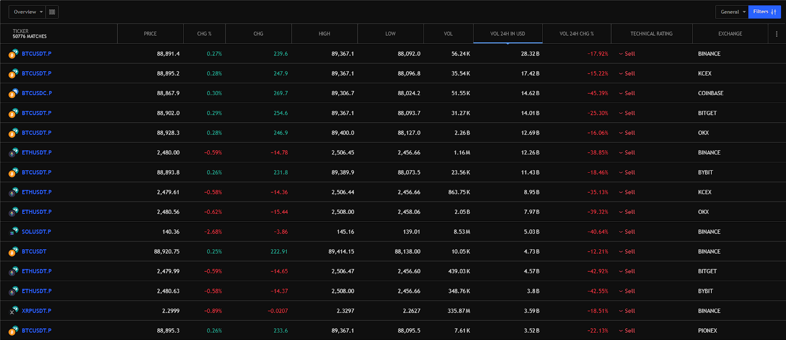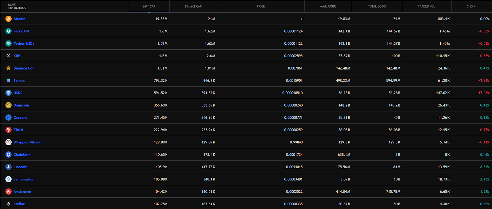 - «Скринер рынка»: отображает цену разных монет на разных биржах. Это полезно для арбитража криптой между биржами (купить монету на одной бирже и продать на другой).