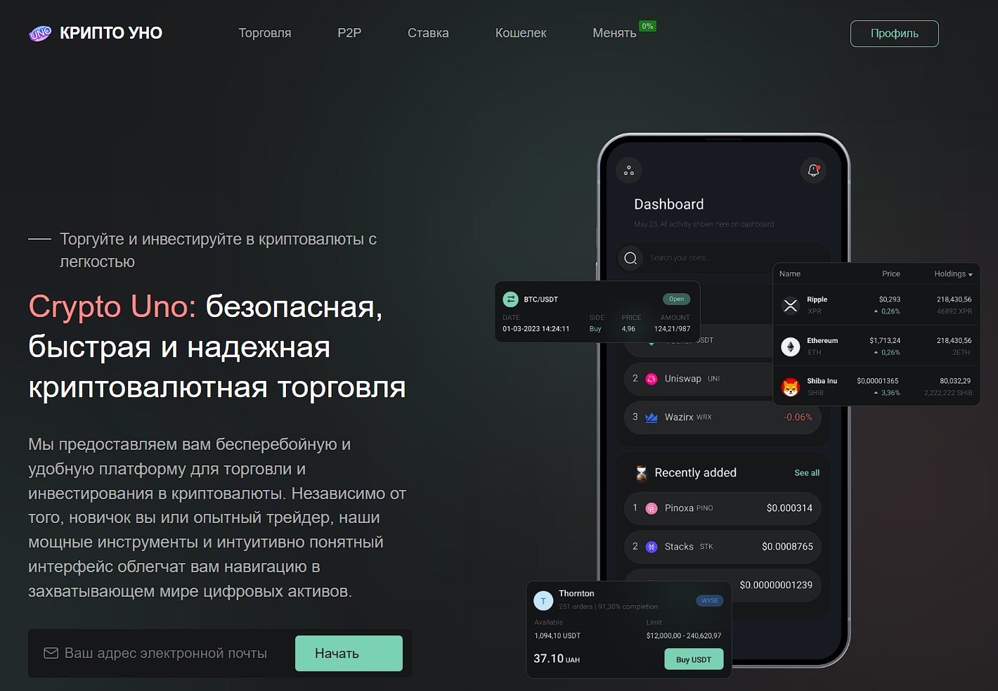 Биржа Cryptouno Me предлагает P2P-платформу для покупки и продажи токенов, а также собственный магазин NFT.
