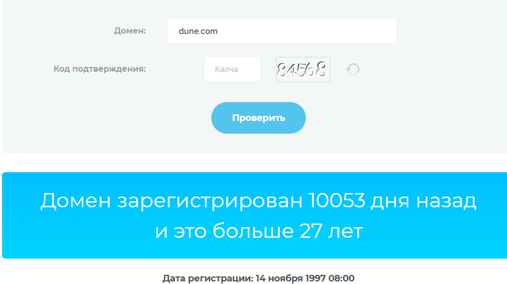 Проверка домена сайта «Дюн ком» и страниц на сторонних источниках