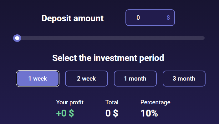 - 1 неделя – 10% доходность;