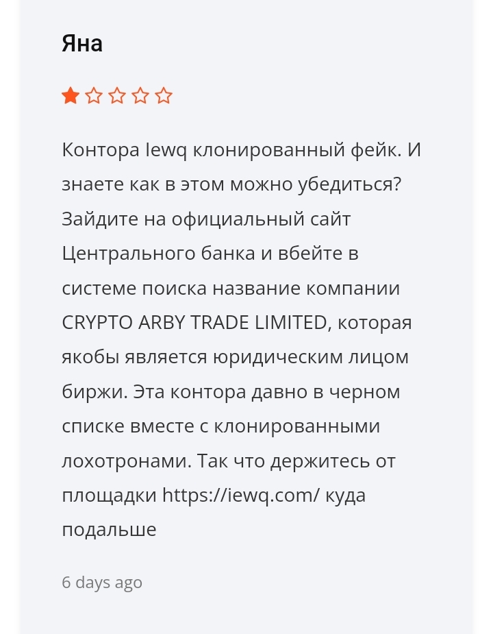По хорошему вернуть свои средства клиентам iewq не удается. А предъявить юридические претензии некому – фирма существует только в виртуальном мире, вместо счетов компании, средства клиенты переводят на анонимные криптокошельки аферистов.Отзывы обманутых клиентов о заработке со скам – биржей Iewq Com
