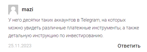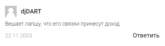 В постах блогер никогда не упоминает о рисках и ответственности. Известный специалист поднимает прибыль на связках, но люди высказываются о его методах заработка отрицательно, говоря, что не смогли заработать по стратегиям гуру.