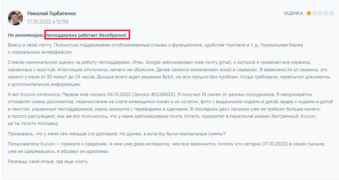 Из минусов пользователи выделяют неоперативность службы поддержки, внезапные блокировки счетов. Биржа может аннулировать открытые ордера и не зачесть прибыль, при этом получить объяснения в поддержке не выйдет. У некоторых клиентов пропадают деньги с кошелька, а платформа не в состоянии объяснить это факт.
