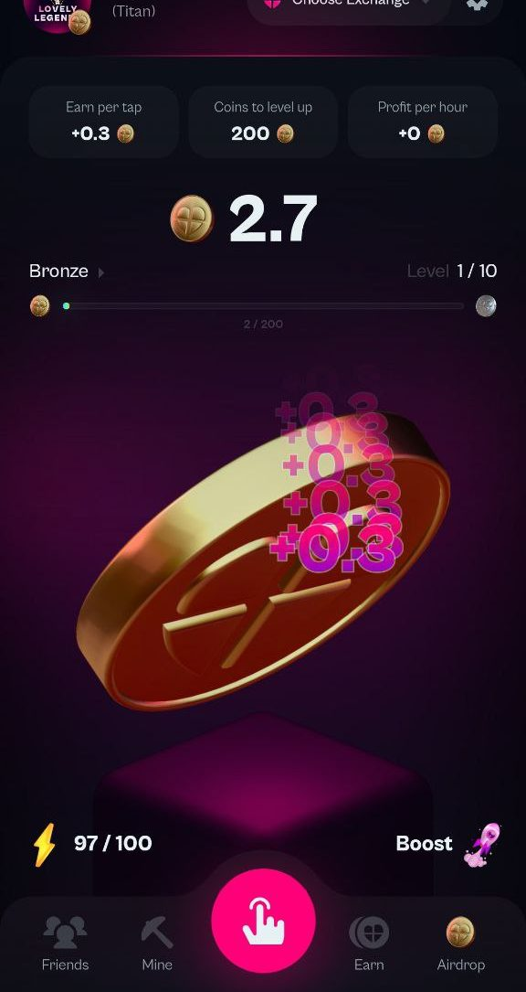 За каждое нажатие появляется 0.3 токена Lovely Legends. В верхней части интерфейса можно увидеть, сколько монет тапалка Ловели Легедс дает за каждое нажатие, какое количество токенов требуется для повышения уровня, и какой профит за час.Под криптовалютой Lovely с правой стороны можно найти кнопку Boost. После нажатия игрокам предлагается несколько вариантов улучшения своего аккаунта: