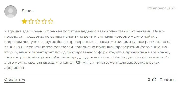 Оценка Телеграм-канала Million P2P, отзывы инвесторов о работе Alex Supreme и описание услуг