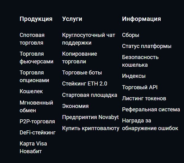 Биржа “Новабит” предлагает следующие продукты и услуги: