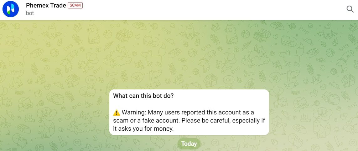 Из-за отсутствия видимой связи напрашивается вывод, что бот и биржа Phemex никак не связаны. Видно, мошенники воспользовались известным именем платформы, чтобы увеличить число клиентов и собственный доход.