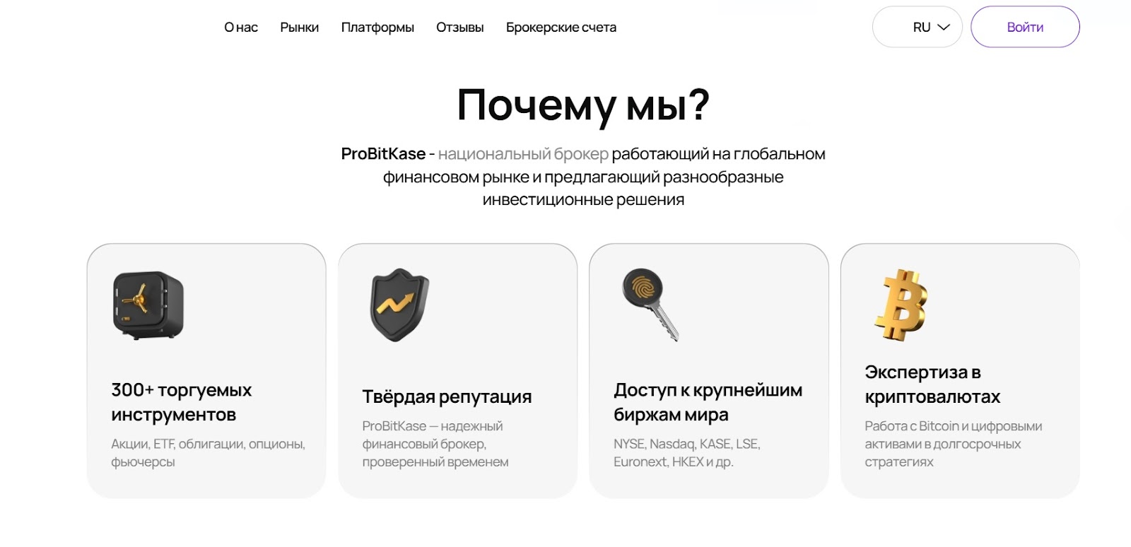 Брокер ProBitKase предлагает торговлю контрактами на акции, валютные пары, фьючерсы, металлы и индексы, а владельцы говорят, что у них есть доступ к крупнейшим мировым биржам. В статье рассказали о репутации брокера, изучили возможности платформы и проанализировали деятельность проекта.