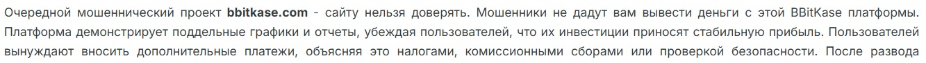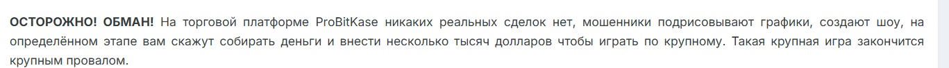 Также есть мнение, что похожий сайт BbitKase com, который обвиняют в мошенничестве, тоже принадлежит создателям «ПроБитКасе». Положительных комментариев ни об одном из проектов нет.