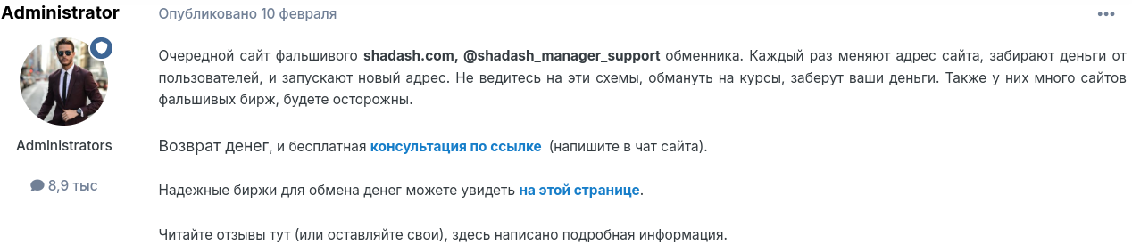 Как вы считаете, можно ли использовать обменник — будем рады, если вы поделитесь своим решением и мнением в комментариях под обзором обменника Shadash com. О том, как не стать жертвой мошенников, читайте статьи на нашем сайте.