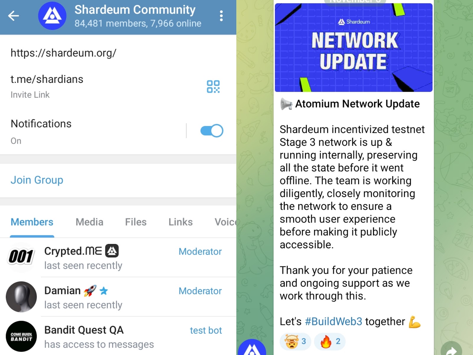 В группе Shardians основатели размещают сведения об изменениях в проекте. 8 ноября был выложен пост о том, что были произведены обновления Stage 3. Также в группе можно общаться с админами и другими подписчиками.