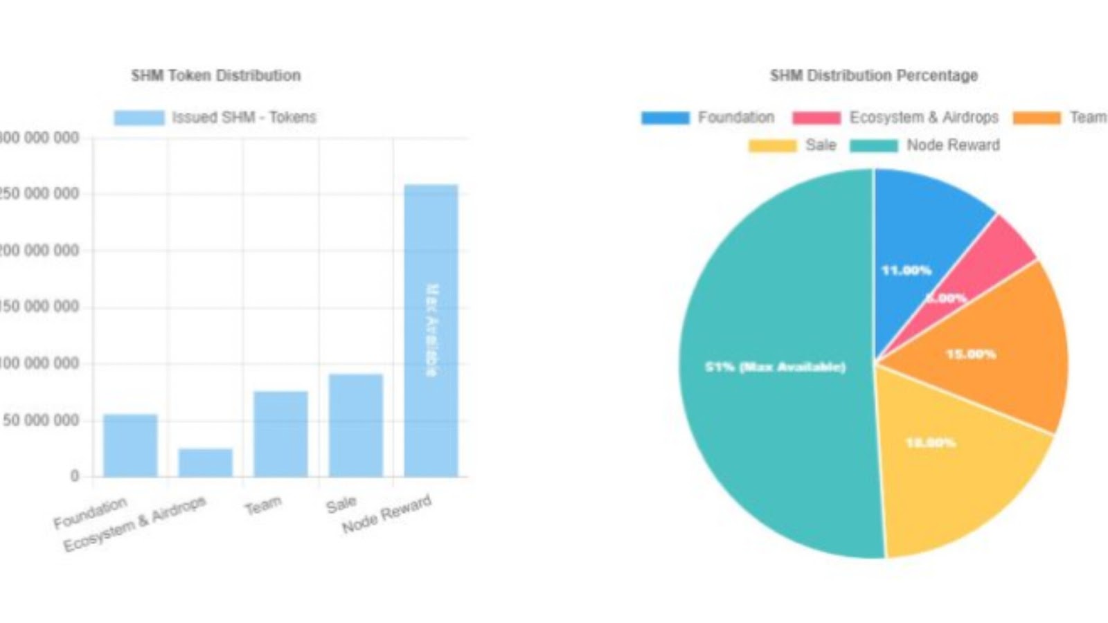Криптовалюта SHM работает на сети Shardeum. Общее предложение составляет 508 000 000 монет. Разработчики делятся такой токеномикой: