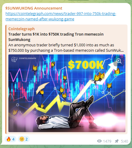 Последние новости о токене Sun Wukong