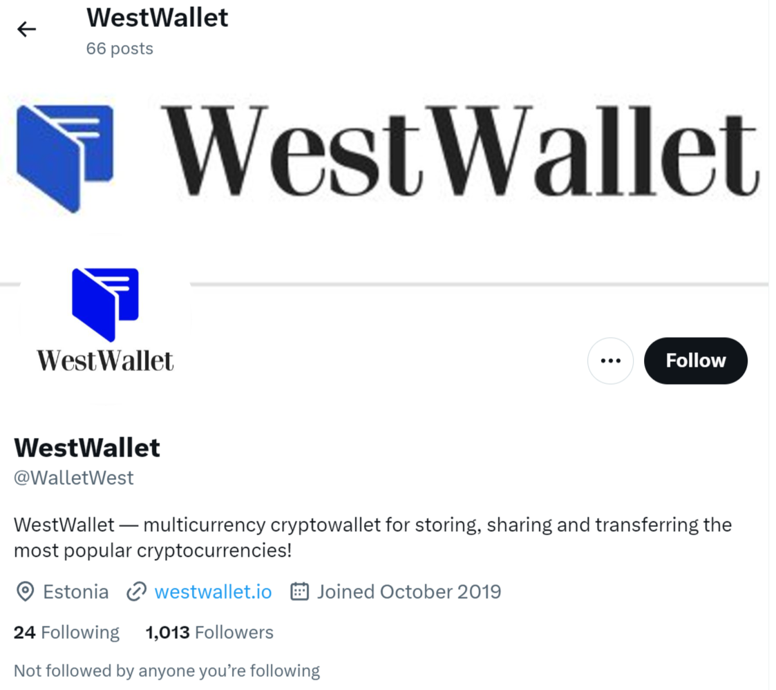 В список входит страница в ВКонтакте по ссылке vk com/westwallet, которой не подписано и десяти человек. Профиль в Фейсбуке — facebook com/WestWallet.info на конец августа и вовсе не доступен. Сообщество в Твиттере собрало около 1 тыс. человек, но последняя запись здесь сделана еще в 2021 году. Есть также Телеграмм-канал — WestWallet_io, к которому подписано около 300 человек.