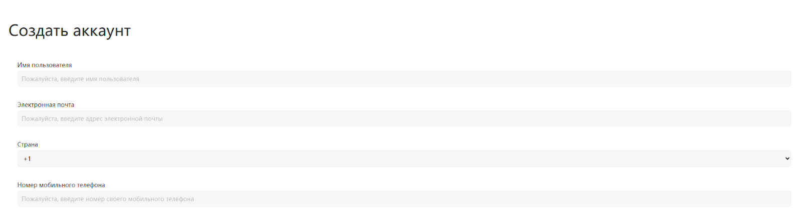 Регистрация занимает всего 5 минут и требует от пользователя следующую информацию: