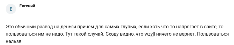 - Главная причина недовольства —невозможность вывести средства, вследствие чего Wzyjl com называют мошенниками.