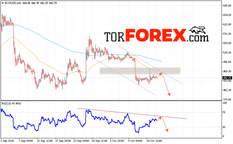 Таким образом, Bitcoin Cash прогноз и аналитика на 18 октября 2018 предполагает попытку теста области сопротивления вблизи уровня 465, откуда стоит ожидать отскок и продолжения падения BCH/USD в область ниже уровня 375, дополнительным сигналом в пользу снижения Bitcoin Cash выступит тест линии тренда на индикаторе относительной силы, отменой варианта падения станет сильный рост и пробой области 495, что укажет на продолжение роста криптовалюты.