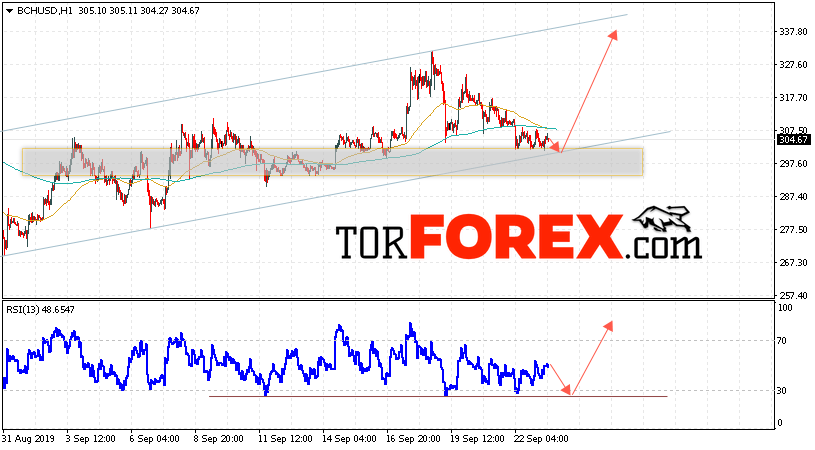 Дополнительным сигнальном в пользу роста котировок цифрового актива BCH/USD выступит тест восходящей линии тренда на индикаторе относительной силы (RSI). Вторым сигналом в пользу роста котировок BCH/USD станет отскок от нижней границы восходящего канала. Отменой варианта роста курса криптовалюты Bitcoin Cash 24 сентября 2019 года станет падение и пробой области 290.00. Это укажет на пробой нижней границы канала и продолжение падения курса криптовалюты с потенциальной целью ниже области 265.00. С пробоем области сопротивления и закрытием котировок выше уровня 325.00 стоит ожидать подтверждения развития бычьей тенденции по Bitcoin Cash.