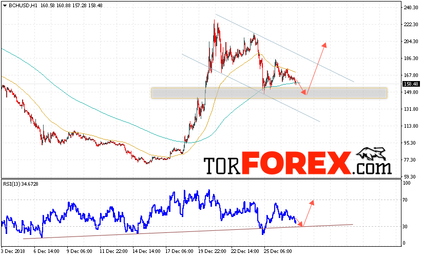 Таким образом, Bitcoin Cash прогноз и аналитика на 28 декабря 2018 предполагает попытку теста области поддержки вблизи уровня 145. Откуда стоит ожидать отскок и продолжения роста BCH/USD в область выше уровня 205. Дополнительным сигналом в пользу роста Bitcoin Cash выступит тест линии тренда на индикаторе относительной силы. Отменой варианта роста станет падение и пробой области 130. Это укажет на продолжение падения криптовалюты.