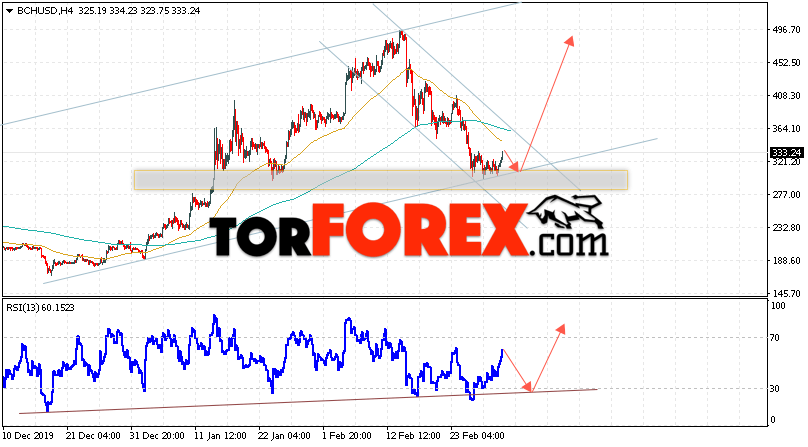 Дополнительным сигнальном в пользу подъёма котировок цифрового актива BCH/USD тест линии поддержки на индикаторе относительной силы (RSI). Вторым сигналом в пользу роста котировок BCH/USD станет отскок от нижней границы восходящего канала. Отменой варианта роста курса криптовалюты Bitcoin Cash 3 марта 2020 года станет падение и пробой области 275.05. Это укажет на пробой области поддержки и продолжение падения курса криптовалюты с потенциальной целью ниже области 215.05. С пробоем верхней границы нисходящего канала и закрытием котировок выше уровня 365.05 стоит ожидать подтверждения развития бычьей тенденции по Bitcoin Cash.
