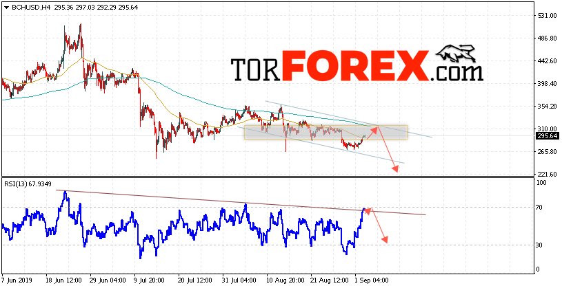 Дополнительным сигнальном в пользу снижения котировок BCH/USD выступит тест нисходящей линии тренда на индикаторе относительной силы (RSI). Вторым сигналом в пользу падения котировок BCH/USD станет отскок от верхней границы нисходящего канала. Отменой варианта падения курса криптовалюты Bitcoin Cash 4 сентября 2019 года станет сильный рост и пробой области 325.00. Это укажет на пробой верхней границы медвежьего канала и продолжение роста курса криптовалюты с потенциальной целью выше области 355.00. С пробоем области поддержки и закрытием котировок ниже уровня 255.05 стоит ожидать подтверждения развития нисходящей тенденции по Bitcoin Cash.