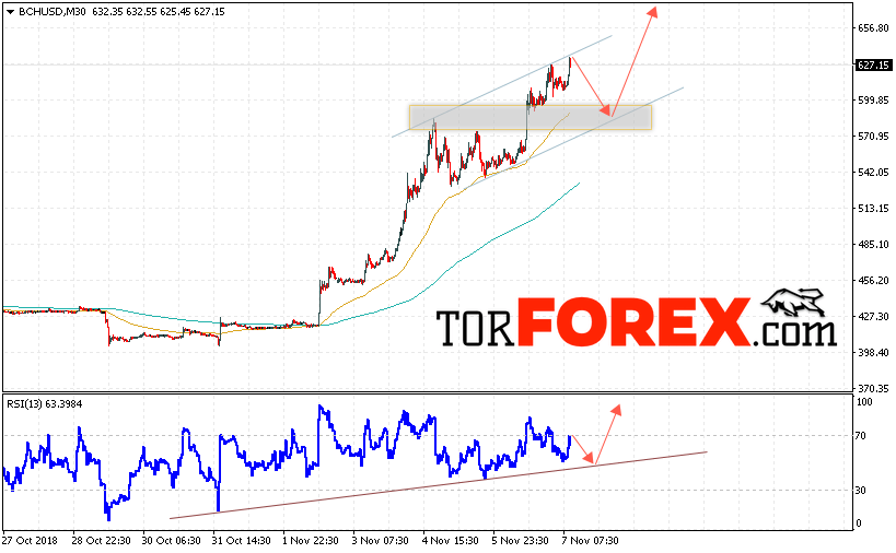 Таким образом, Bitcoin Cash прогноз и аналитика на 8 ноября 2018 предполагает попытку теста области поддержки вблизи уровня 580, откуда стоит ожидать отскок и продолжения роста BCH/USD в область выше уровня 675, дополнительным сигналом в пользу роста Bitcoin Cash выступит тест линии тренда на индикаторе относительной силы, отменой варианта роста станет падение и пробой области 560, что укажет на продолжение снижения криптовалюты.