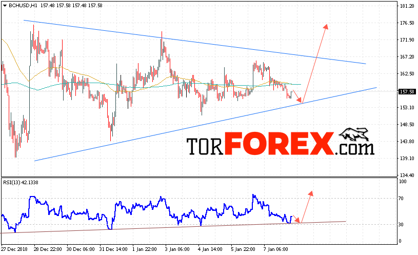 Таким образом, Bitcoin Cash прогноз и аналитика на 9 января 2019 предполагает попытку теста области поддержки вблизи уровня 155. Откуда стоит ожидать отскок и продолжения роста BCH/USD в область выше уровня 175. Дополнительным сигналом в пользу роста Bitcoin Cash выступит тест линии тренда на индикаторе относительной силы. Отменой варианта роста станет падение и пробой области 145. Это укажет на продолжение падения криптовалюты.