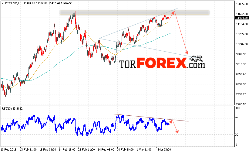 В пользу падения котировок BTC/USD выступит тест линии тренда на индикаторе относительной силы. Отменой варианта снижения Bitcoin станет сильный рост и пробой области 12000, что укажет на пробой верхней границы модели и продолжение роста BTC/USD выше уровня 12500. Подтверждением падения выступит пробой уровня 10800.